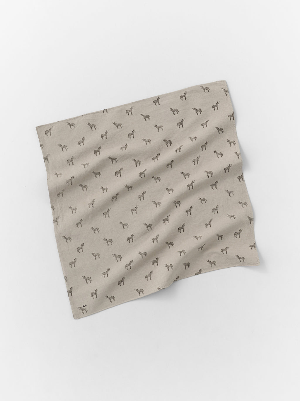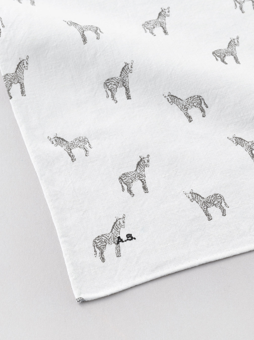This bandana with a three-roll finish. A print series featuring A&S's signature "Cotton linen OX" fabric, adorned with classic etching-style illustrations of the 2026 zodiac sign, "Horse." A short pullover pajama featuring a print inspired by the Horse, the 2026 zodiac animal. Titled “ZEBRAS,” the design depicts a herd with a comical, whimsical charm. Available in two colors, Vintage white and Gray beige are available. Vintage white is an industrial reproduction of the "grayish white" seen in vintage and antique fabrics by controlling the yarn color, while Gray beige is a post-dyed version of Vintage white. Both are with "A.S" embroidery.