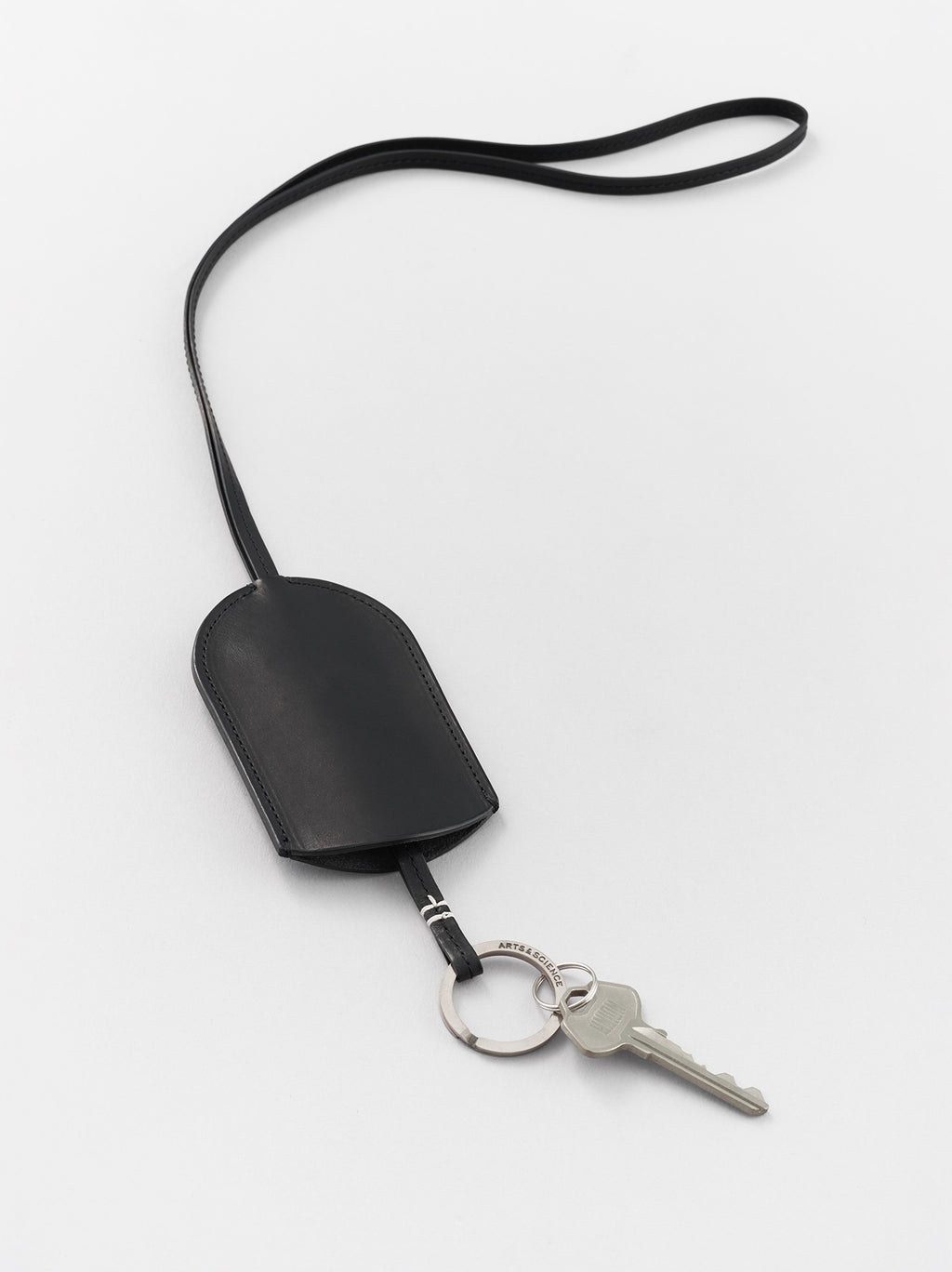 A key case designed to be worn around the neck like a necklace. Practical and easy to coordinate as a leather accessory, it also helps prevent keys from getting lost. Inside, it comes with an original keyring featuring the ARTS & SCIENCE logo. The strap is hand-stitched to secure the ring and also serves as a subtle design accent. Made from cow leather that reveals the natural character of the hide, it will develop a rich patina and deeper expression over time. Available in Black, Dark brown, and Camel.