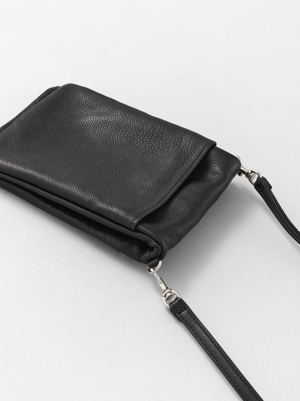 The 2 pocket long pochette features a vertical bi-fold design, with a zippered front pocket for storing a wallet and card slots on the inside. The outer back pocket is perfect for holding a smartphone. Despite its compact size, it offers excellent storage capacity, making it versatile enough to be used as a wallet bag. The leather is a rare Japanese kip leather, tanned using an eco-friendly technique called Portilla tanning, which utilizes non-toxic organophosphate-based tanning agents. The finish preserves the natural texture of the leather, resulting in a more supple feel than conventional kip leather. The natural leather has a very rich expression, you can see the grain and tiger spots that are part of the original expression of the skin. The color and shine of the leather deepens as it is used, making it an attractive item that can be enjoyed as it ages.