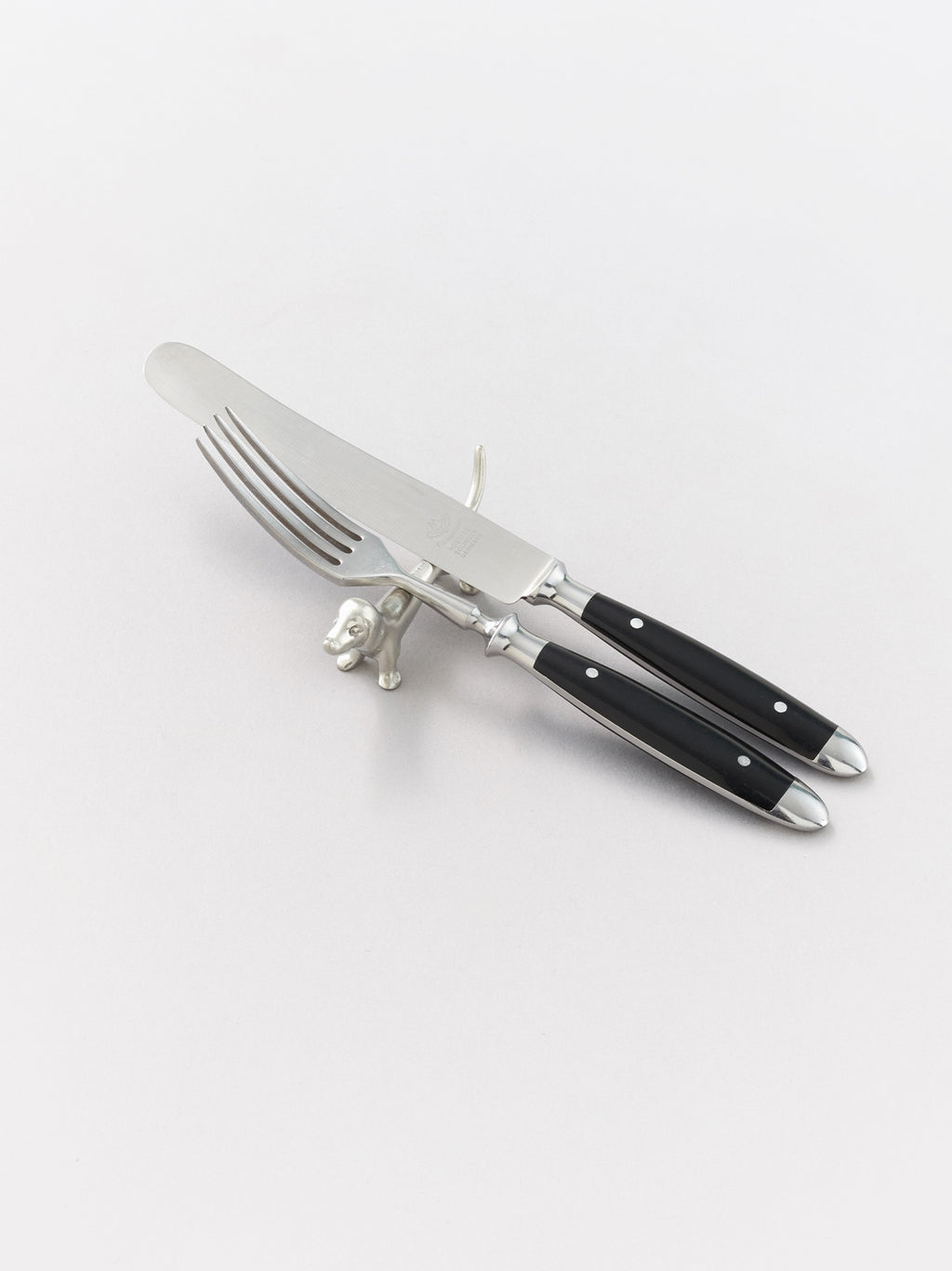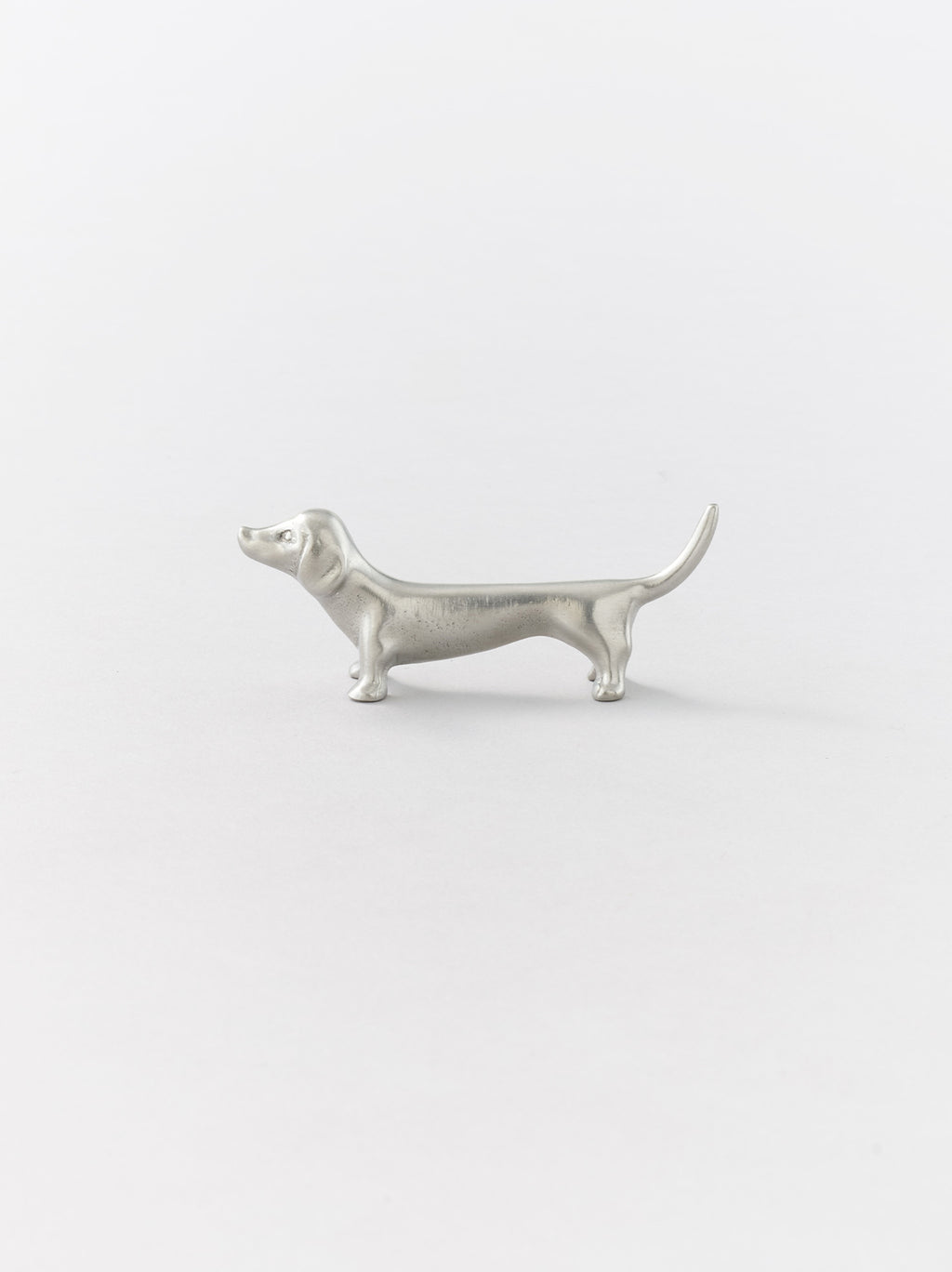 This dachshund-shaped cutlery rest in pewter by Italian brand COSI TABELLINI is handcrafted by skilled artisans. It combines practicality with decorative appeal, adding a touch of charm to the dining table. Its solid construction provides excellent stability for resting knives, forks, or chopsticks.