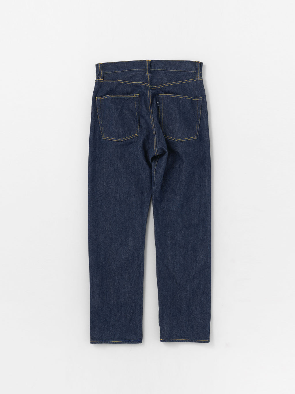 The Old 5 pocket pants is inspired by denim pants from the 1940s. It features a straight silhouette typical of the period, with a deeper rise and generous room from the thigh to the hem. The 13.5 oz selvedge denim is crafted from cotton dyed with genuine hon-ai indigo, which develops the rich, distinctive fading and subtle color variations that only natural indigo – not synthetic - can achieve. The Suvin cotton lends an exceptionally smooth, luxurious feel that becomes even more refined with wear. The jacket can also be paired with the matching Old trucker jacket to form a coordinated set.
