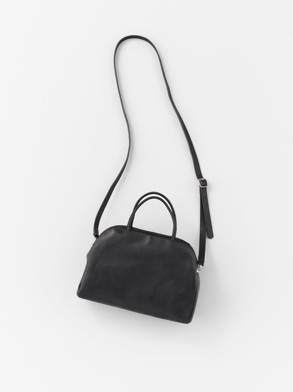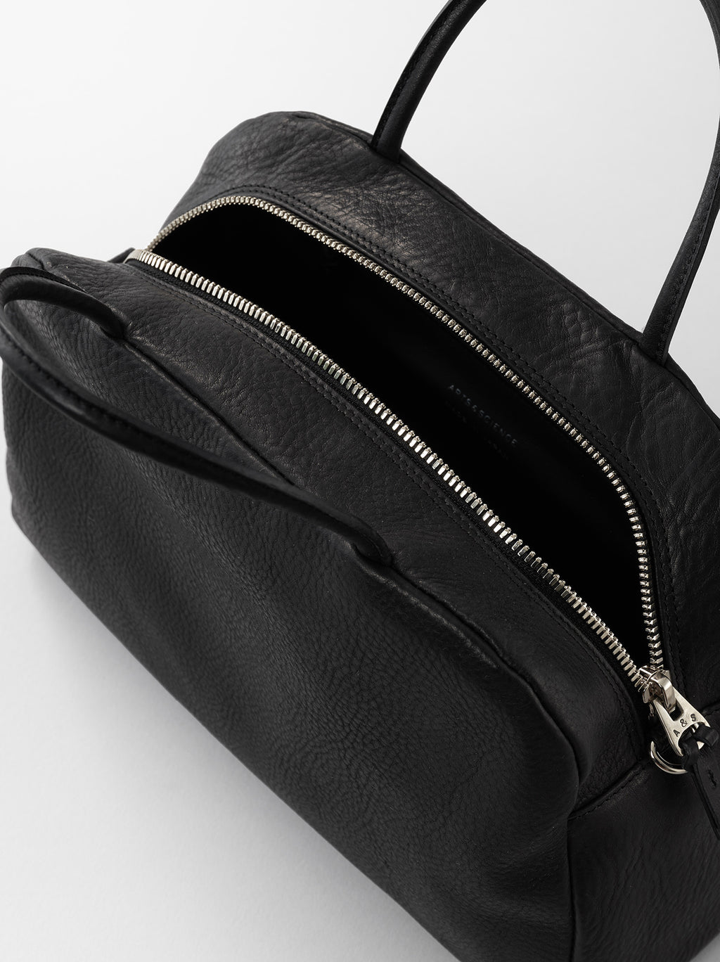 S size of the A&S standard bag, which can be used as a hand bag and also shoulder bag with the attached strap. One pocket with a zipper is provided inside. The leather is crafted at a long-established tannery in Tuscany, Italy, using the traditional vacchetta tanning method. Beef tallow is infused into the hide so the oils remain, giving the leather lasting durability and a rich, nuanced character. The natural grain that develops during the tanning process is another defining feature.