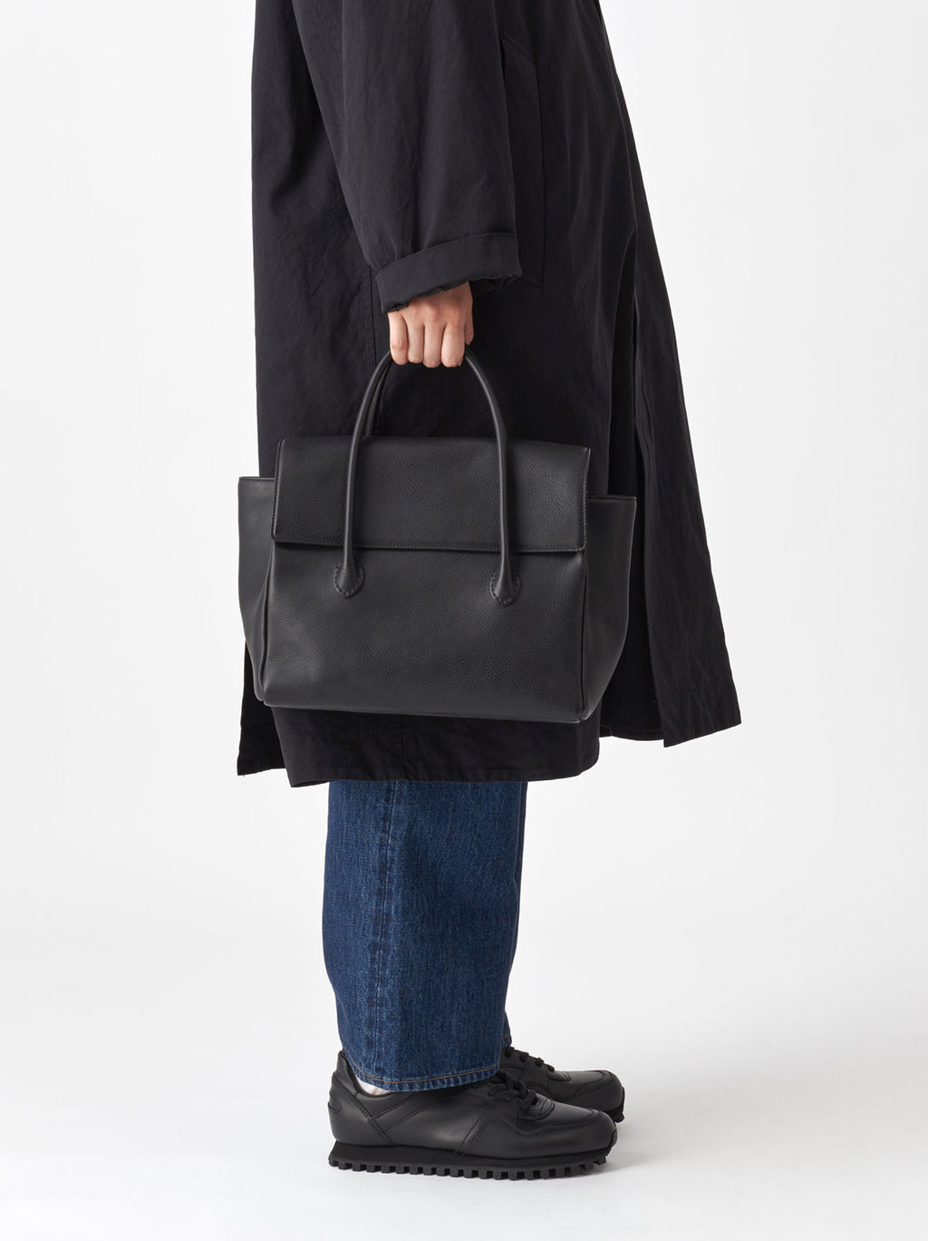 Stitch flap bag S size. Moderately small in size with a simple yet elegant appearance. The flap can be placed inside. There is one flat pocket on the front inside. The more you use the bag, the more it becomes shiny and deep, and the more supple and beautiful it ages. Available in three sizes (mini, S and M) to suit any occasion and style.
